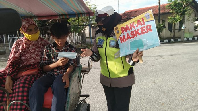 “Ini adalah upaya dalam menindak lanjuti kebijakan Kapolri guna memberikan Penerangan tentang Penanganan dan pencegahan penyebaran Virus Corona, sebagai bagian dari pelayanan Polri khususnya Satlantas kepada masyarakat,” Ucap Kasatlantas AKP. H. W Siahaan SH.
