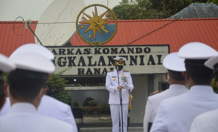 Danlanal Ranai Kolonel Laut (P) Dofir memimpin secara langsung upacara kenaikan pangkat prajurit Lanal Ranai periode 1 Oktober 2021 (foto istimewa)