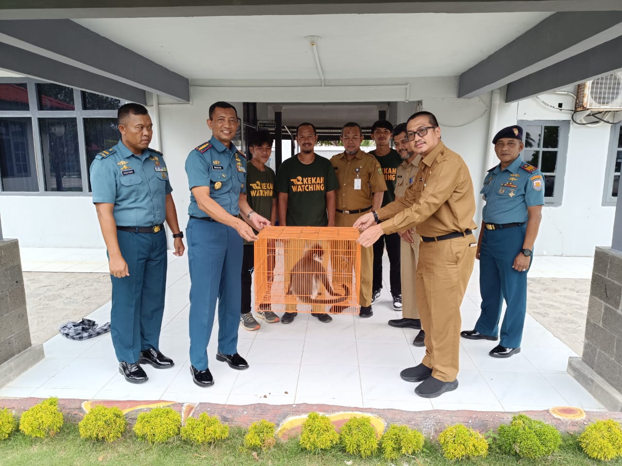 Bursakota.co.id, Natuna – Komandan Lanal Ranai Kolonel Laut (P) Maman Nurachman, CTMP didampingi perwira Staf Lanal Ranai telah menyerahkan seekor hewan “Kekah” kepada Pemda Natuna yang diwakili oleh Sekda Natuna, Boy Wijanarko, SE di dampingi Kepala DLH Hamidi dan Komunitas “Kekah Watching” Natuna untuk dilepas kembali ke habitat aslinya agar dapat berkembang biak dengan baik, Selasa (18/07/2023)