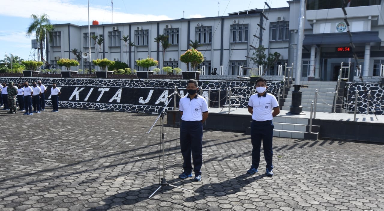 Bursakota, Tanjungpinang – Segenap Prajurit dan Pns Pangkalan Utama TNI Angkatan Laut (Lantamal IV) Tanjungpinang, mengikuit pengarahan dari Komandan Lantamal (Danlantamal ) IV Laksamana Pertama TNI Arsyad Abdullah, S.E., M.A.P., di lapangan apel Markas Komando (Mako) Lantamal IV Jl Yos Sudarso No.1 Batu Hitam Tanjungpinang Kepulauan Riau, Jumat(15/5/2020).