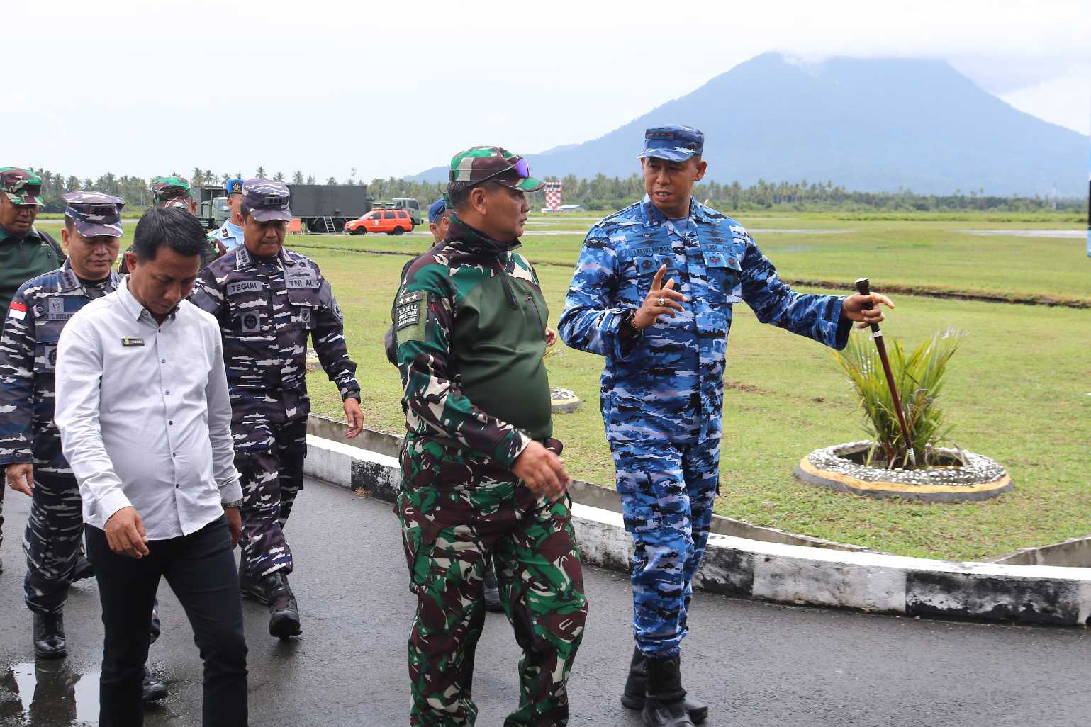 Pangkogabwilhan I tiba menggunakan pesawat CN-295 A-2909, Skadron Udara 2 Lanud Halim Perdanakusuma. Penyambutan dilakukan langsung di Main Apron Lanud RSA, Kab. Natuna, Provinsi Kepri.