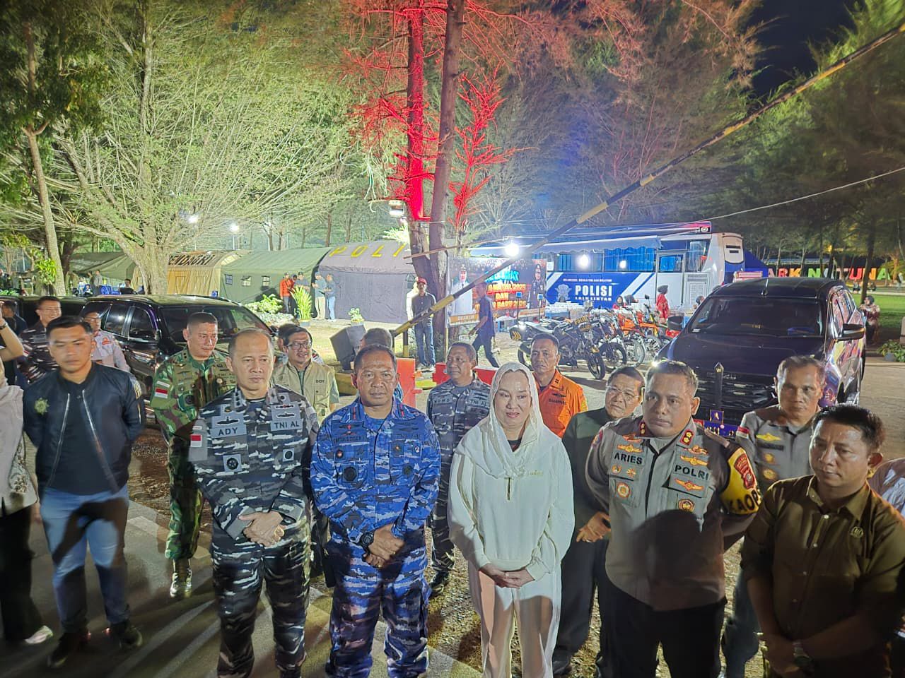 FOTO : Danlanud RSA Natuna Marsekal Pertama TNI Onesmus Gede Rai Aryadi, S.E., M.M., M.Han., patroli bersama pemantauan situasi kamtibmas malam Tahun Baru 2026 di Posko Terpadu Pantai Piwang, Ranai, Kab. Natuna, Provinsi Kepri, Rabu (31/12/2025) malam.