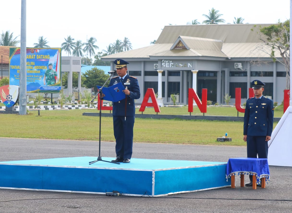Ket Foto : Danlanud RSA Kolonel Pnb Dedy Iskandar, S.Sos., M.M.S., M.Han, bertindak selaku Inspektur Upacara (Irup) memimpin upacara Peringatan Hari Kesaktian Pancasila di Main Apron Lanud Raden Sadjad (RSA), Ranai,