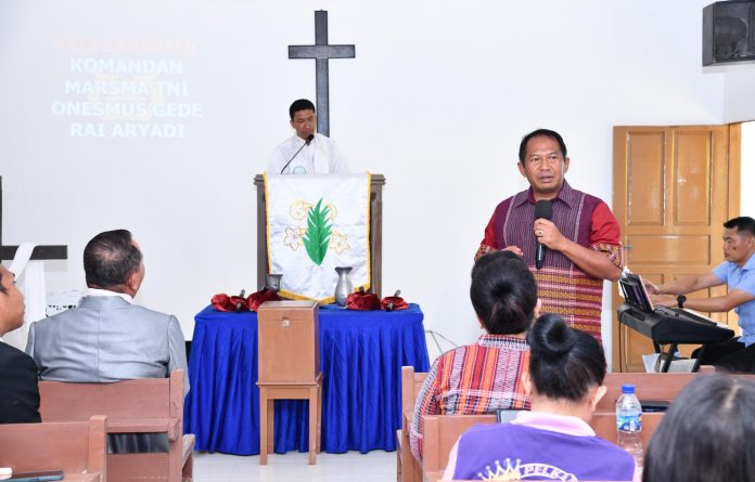Natuna – Komandan Lanud Raden Sadjad Marsekal Pertama TNI Onesmus Gede Rai Aryadi, S.E., M.M., M.Han., meresmikan Pastori Gereja Kristen Protestan Oukumene “Bukit Kasih” Lanud RSA, Minggu (5/4/2026), di Kabupaten Natuna, Provinsi Kepulauan Riau.