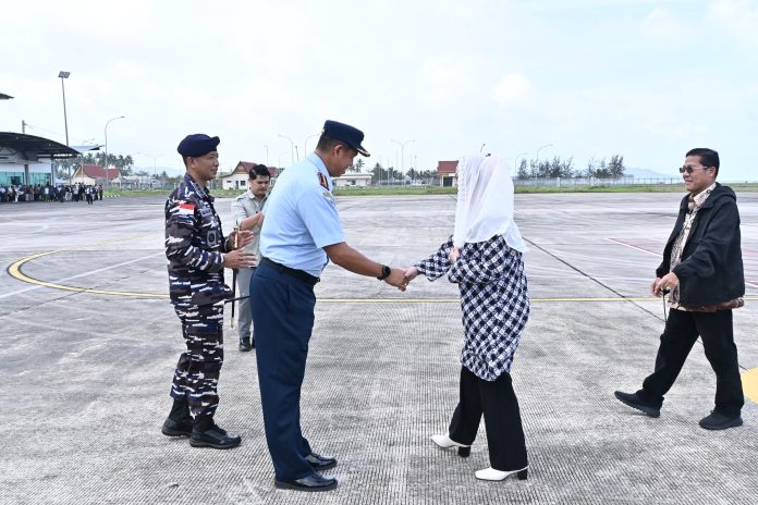 Natuna – Komandan Lanud Raden Sadjad (Danlanud RSA) Natuna, Kolonel Pnb I Ketut Adiyasa Ambara, menyambut kedatangan Bupati Natuna, Cen Sui Lan, dan Wakil Bupati Natuna, Jarmin Sidik, di Bandara RSA Natuna, Sabtu (1/3/2025).
