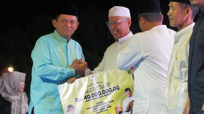 FOTO : Gubernur Kepri Ansar Ahmad menyerahkan bantuan pada momentum Halalbihalal di Kabupaten Natuna
