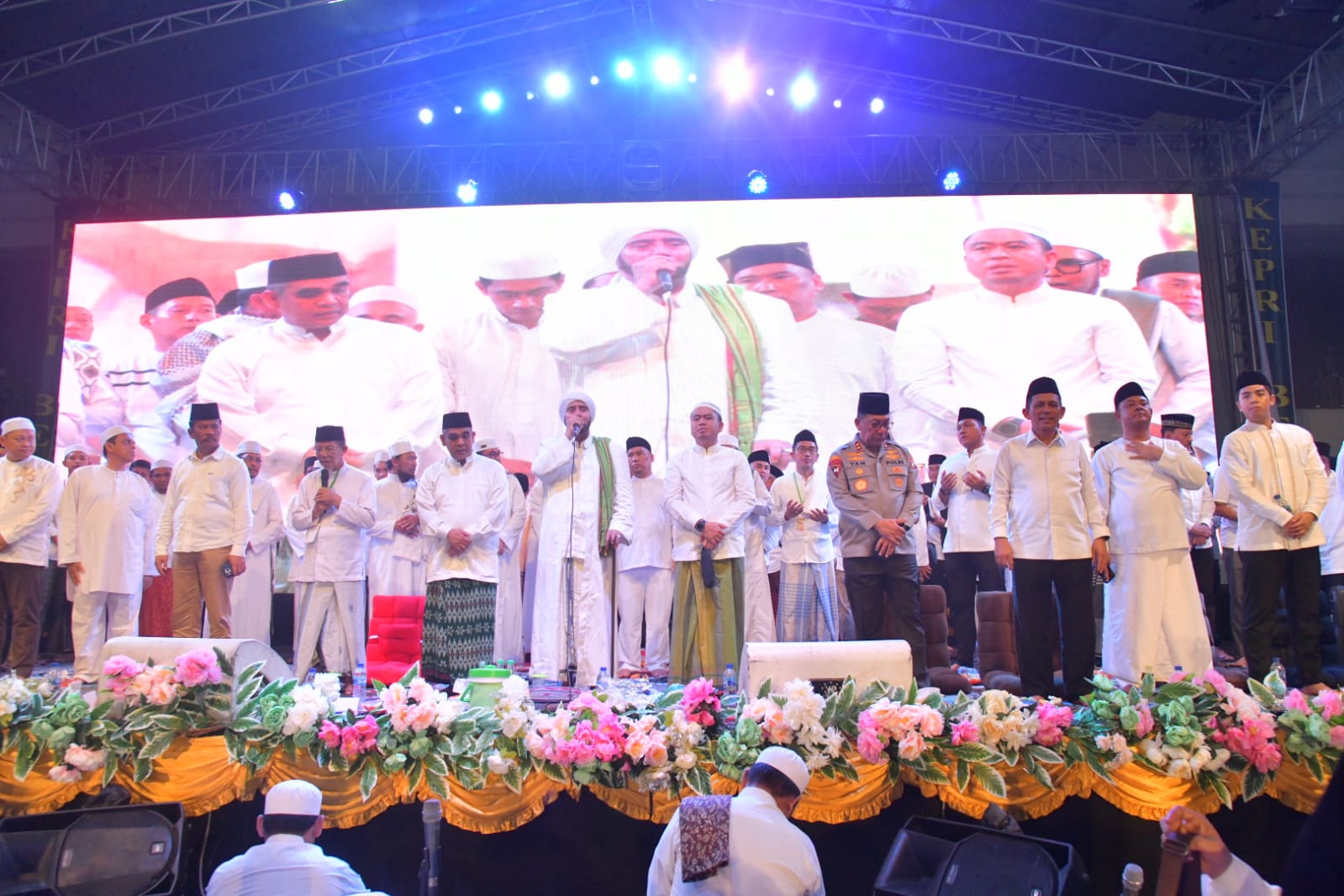 Bursakota.co.id, Batam – Kepri Bershalawat untuk Indonesia Maju yang digelar pada Kamis (16/5) malam di Masjid Raya Sultan Mahmud Riayat Syah, dihadiri ribuan masyarakat Kepri, yang tumpah ruah antusias mengikuti. Habib Syech bin Abdul Qodir Assegaf hadir menyapa dan bersholawat bersama masyarakat.