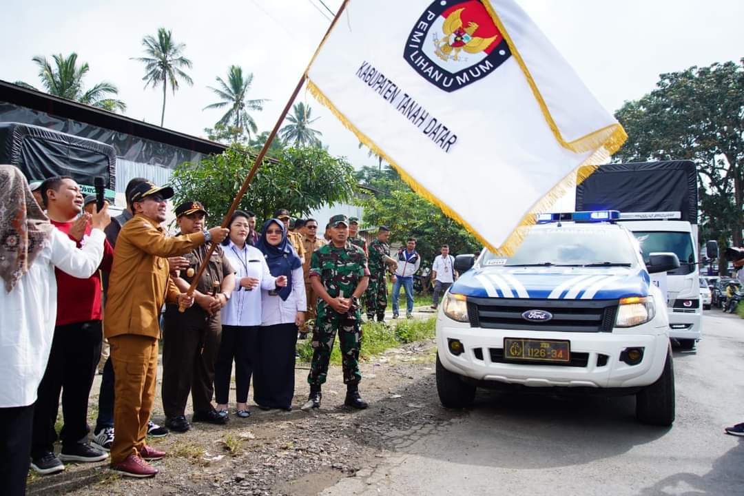 Bupati Eka Putra telah melepas konvoi logistik sebagai tahap penting dalam persiapan pemilu 2024 itu, di gudang Logistik KPU Tanah Datar yang terletak di Kecamatan Lima Kaum, Senin (12/2/2024).