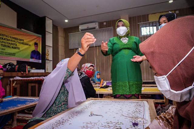“Pelatihan kerajinan Tudong Manto sebagai kerajinan yang dilatihkan karena mampu memberikan nilai tambah ekonomi yang cukup tinggi sehingga bisa menjadi alternatif peningkatan ekonomi keluarga bagi ibu rumah tangga yang tidak bekerja”, jelasnya.