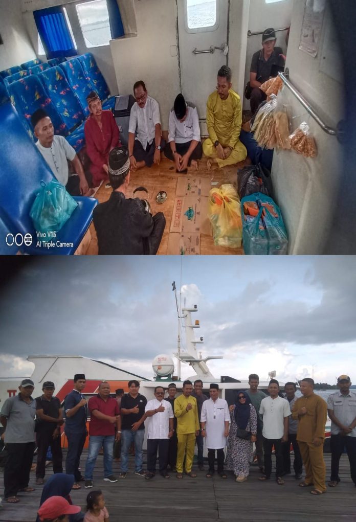 Acara tersebut dimulai dengan do’a selamat bersama warga Centeng, kru kapal, dan perwakilan dari Dishub Lingga, memohon keselamatan dan kelancaran operasional kapal di rute ini.