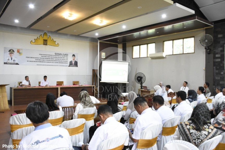 Bursakota.co.id, Tubaba – Pemerintah Kabupaten (Pemkab) Tulang Bawang Barat (Tubaba) menggelar kegiatan Sosialisasi Peraturan Pemerintahan (PP) Nomor 9 Tahun 2021 tentang Disiplin Pegawai Negeri Sipil (PNS) dan Peraturan Bupati (Perbup) Tubaba Nomor 10 Tahun 2018 tentang Kode Etik dan Pedoman Perilaku Pegawai dilingkungan Pemkab Tubaba.