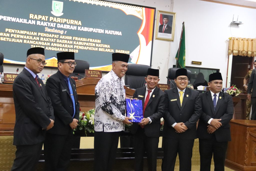 Seluruh fraksi DPRD Natuna menyepakati dan menyetujui Rancangan Anggaran Pendapatan dan Belanja Daerah (RAPBD) Kabupaten Natuna tahun 2025 namun dengan beberapa masukan pokok pikiran.