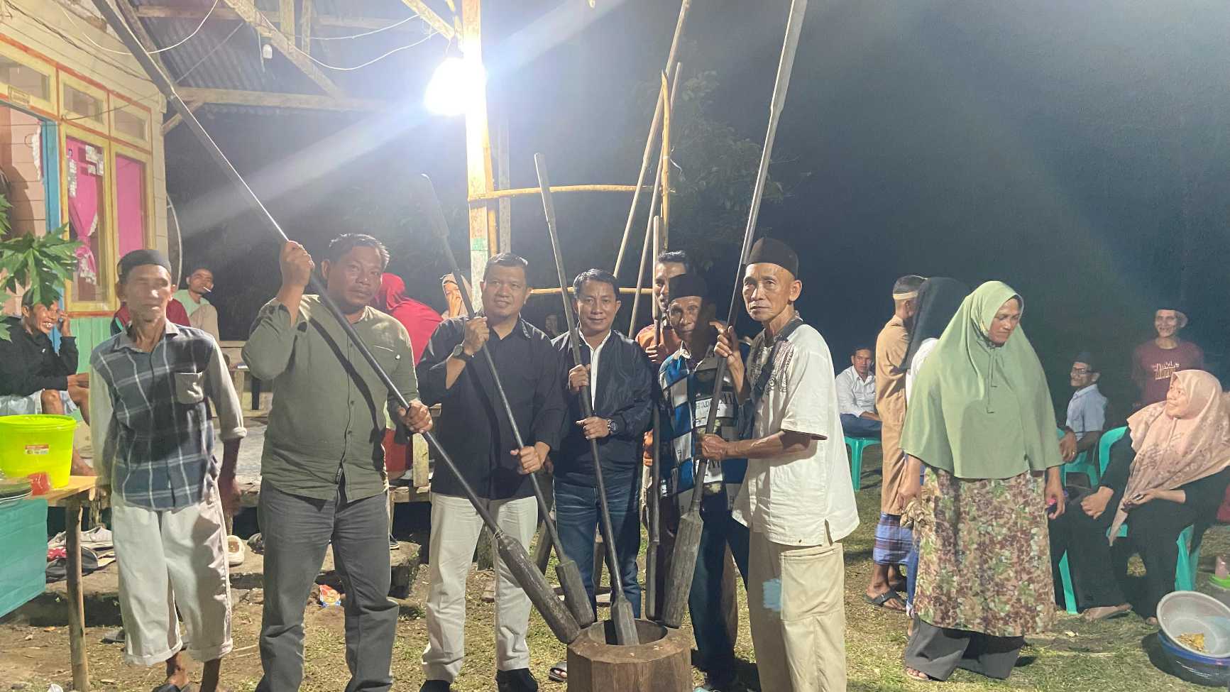FOTO : Ketua DPRD Natuna Rusdi, Camat Bunguran Timur Suparman, Kades Batu Gajah Kurniawan saat menghadiri kegiatan main alu yang diselenggarakan oleh sanggar Dendang Bermadah Desa Batu Gajah