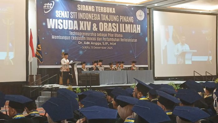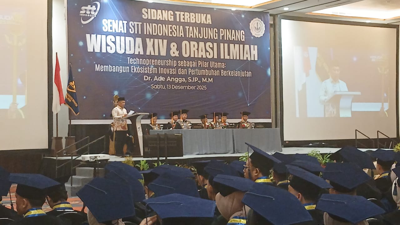 Wisuda ke-XIV STT Indonesia Tanjungpinang berlangsung khidmat dan penuh kebanggaan, dihadiri unsur pimpinan perguruan tinggi, dosen, orang tua wisudawan, serta tamu undangan lainnya.