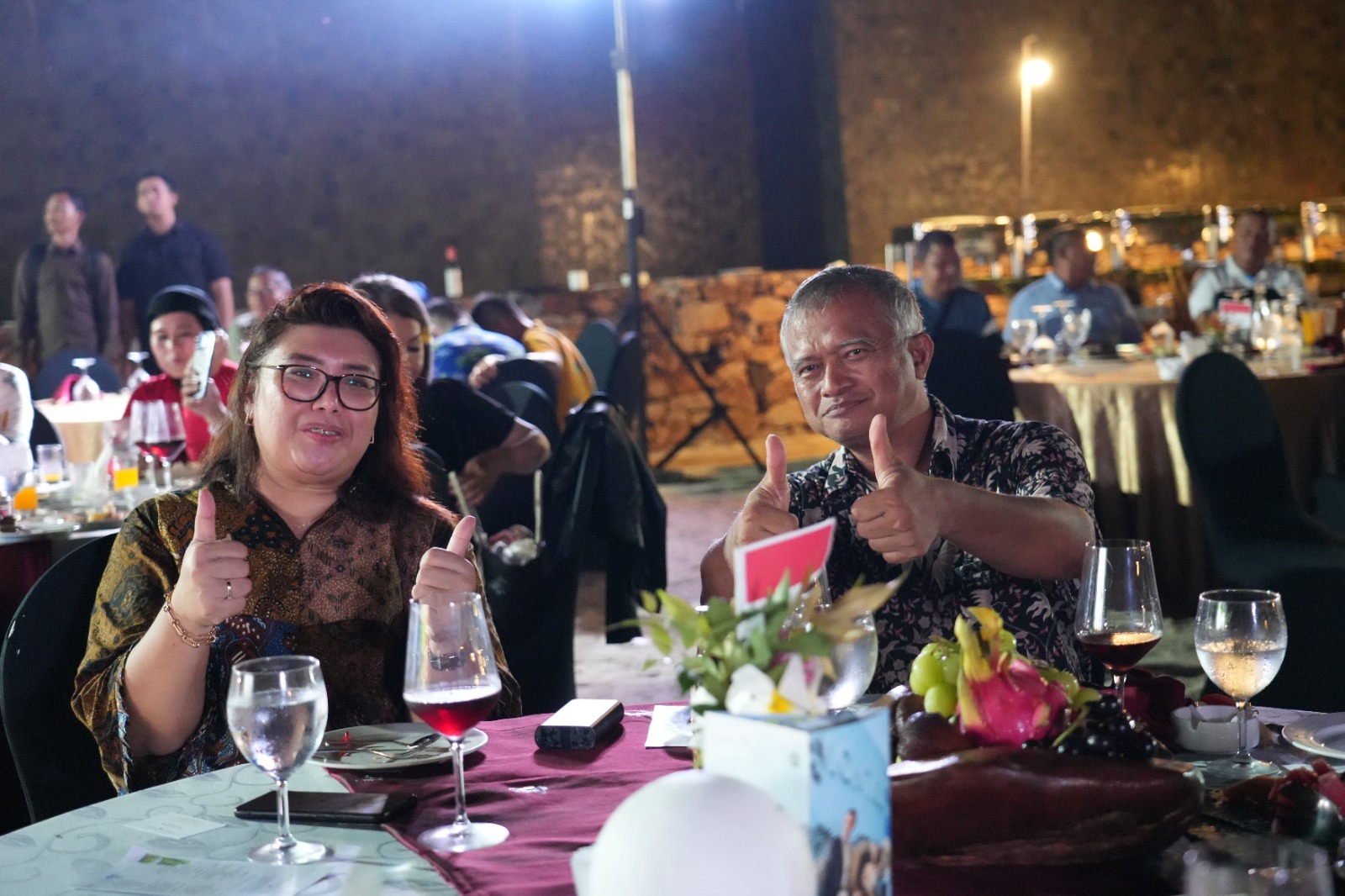 Ket Foto : Kepala Biro Humas Promosi dan Protokol BP Batam, Ariastuty Sirait, yang mewakili Rudi serta Kadispora Kota Batam, Zulkarnain, saat malam anugerah penghargaan dari ITTA Foundation sekaligus acara Gala Dinner Batam Inter-Nation Golf Challenge di Montigo Resort Nongsa