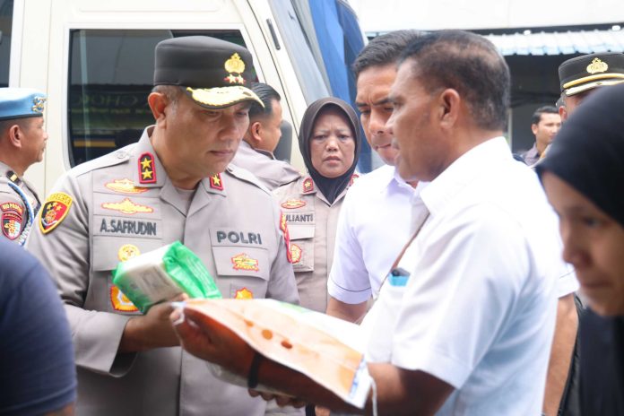 Batam – Kapolda Kepri Irjen. Pol. Asep Safrudin, S.I.K., M.H., meninjau langsung pelaksanaan Gerakan Pangan Murah yang digelar di Pasar Botania 2, Kota Batam.