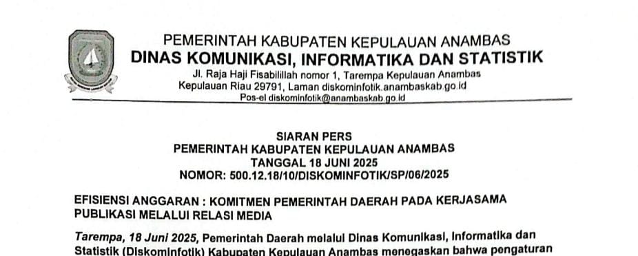 Dalam upaya efisiensi anggaran 2025, Pemkab Kepulauan Anambas memberlakukan kebijakan penghematan belanja kegiatan relasi media. Dari sebelumnya dialokasikan sebesar Rp3,4 miliar, tahun ini dikurangi menjadi Rp1,7 miliar atau 50 persen. Penghematan dilakukan pada kegiatan belanja jasa media cetak, media online lokal dan nasional, media elektronik, galeri foto, banner, video streaming, dan program live.