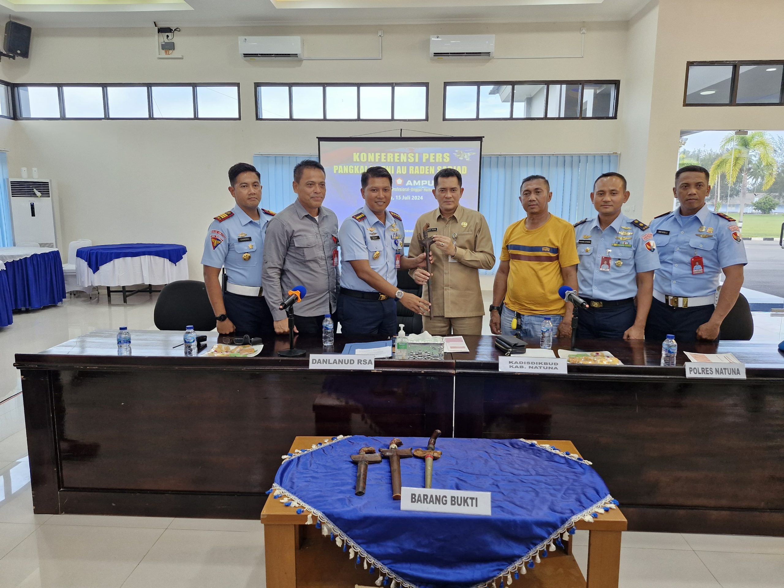 Dalam konferensi pers tersebut, hadir Kepala Dinas Pendidikan dan Kebudayaan Kabupaten Natuna, Hendra Kusuma, S.H., M.Si., Kadisops Lanud RSA Mayor Nav Nanang Afandik, Dansatpomau Lanud RSA Kapten Pom Chandra P. Haryanto H., S.T.Han., Kaintel Lanud RSA Kapten Sus Bowo Raharjo, dan Kanit II Sat Reskrim Polres Natuna Aiptu Teddy Syahputra.