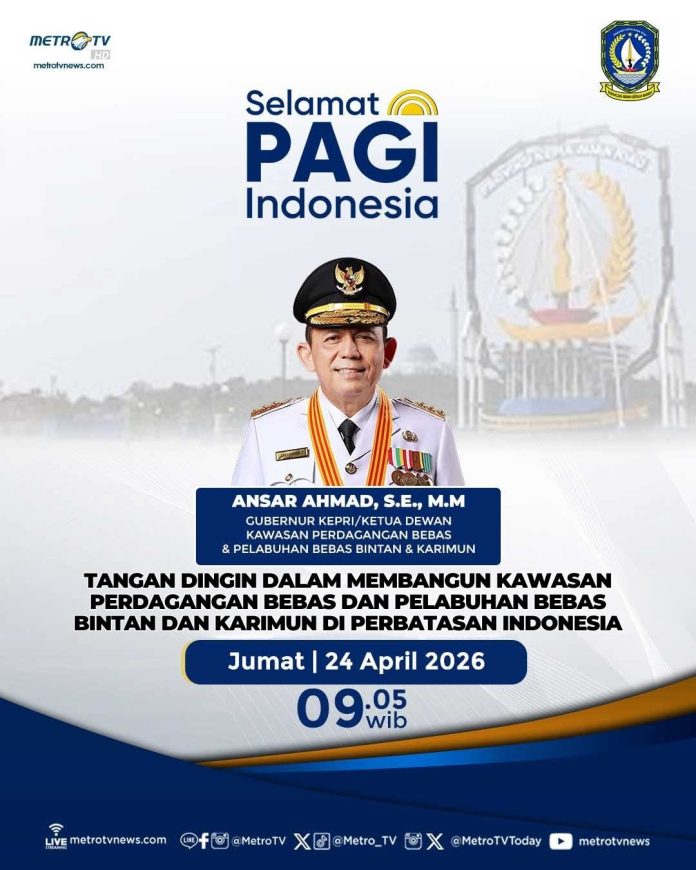 Tanjungpinang – Gubernur Kepulauan Riau, Ansar Ahmad, dijadwalkan tampil dalam program nasional Selamat Pagi Indonesia yang disiarkan langsung di Metro TV pada Jumat (24/4/2026) pagi.