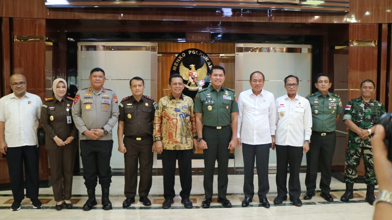 Rakor digelar di ruang rapat Bima Gedung Utama Kemenko Polhukam, Jakarta ini dipimpin Sesmenko Polhukam Letjen TNI Mulyo Aji MA.