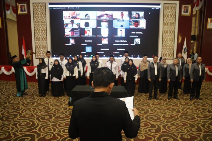Bursakota.co.id, Tanjungpinang – Gubernur Kepulauan Riau Ansar Ahmad disaksikan Sekdaprov Adi Prihantara dan Kepala Dinas Pendidikan Andi Agung mengukuhkan Guru yang diberikan penugasan sebagai Kepala SMAN dan SMKN serta melantik Pejabat Fungsional Pengawas Sekolah di Aula Wan Seri Beni, Dompak, Jumat (5/1).