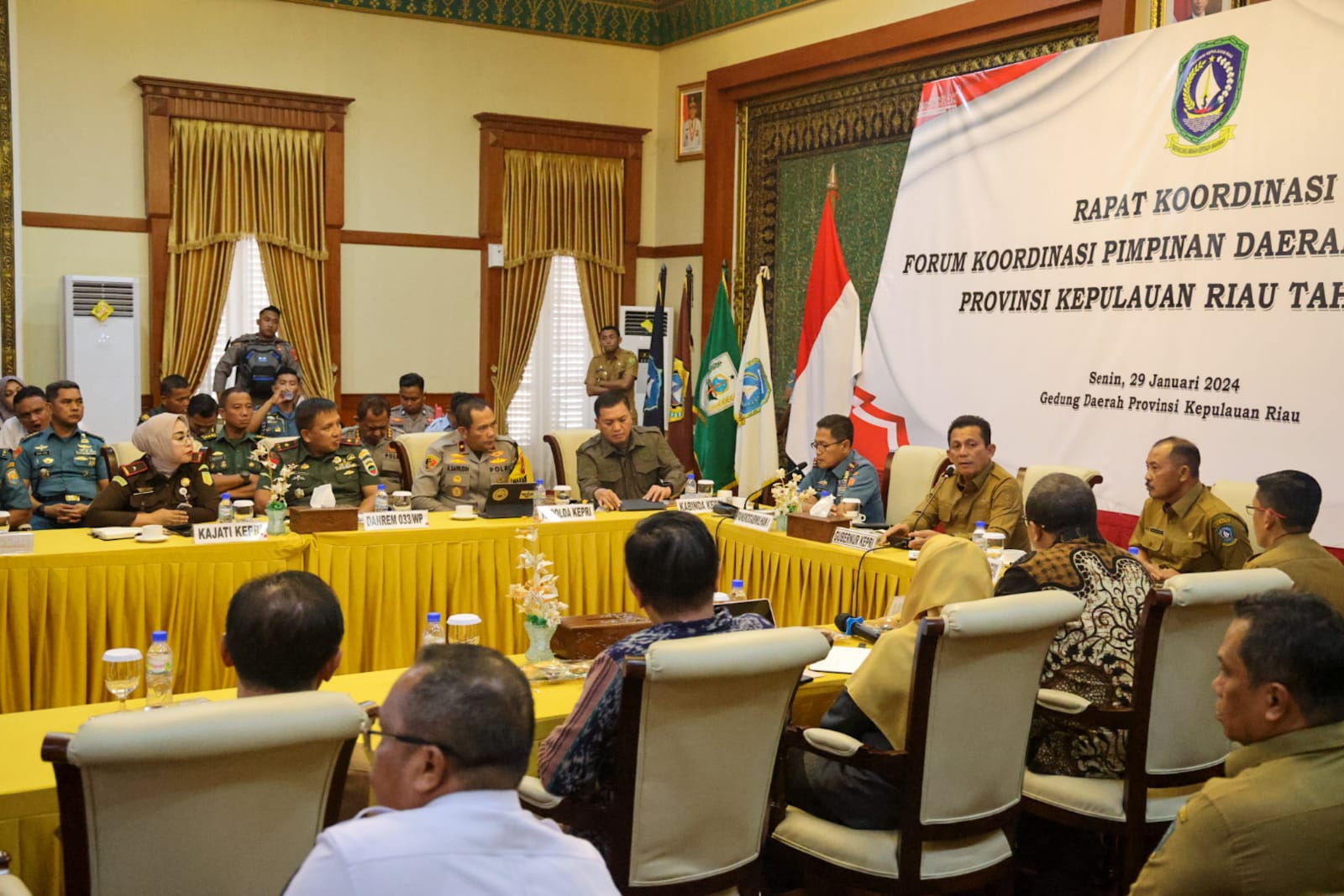 Hal tersebut disampaikan Gubernur Ansar saat memimpin Rapat Koordinasi dengan tema “Kesiapan Menjelang Pelaksanaan Pemilu 2024” yang juga merupakan Rakor Forkopimda perdana di Tahun 2024 di Gedung Daerah Provinsi Kepri, Tanjungpinang, Senin (29/1).