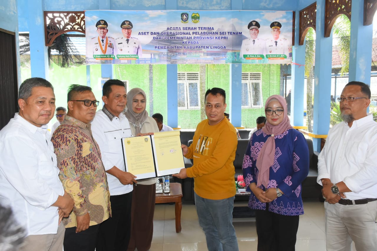 Dalam momen serah terima, Gubernur Ansar Ahmad mengucapkan selamat kepada Pemkab Lingga atas kepercayaan mengelola Pelabuhan Sei Tenam.
