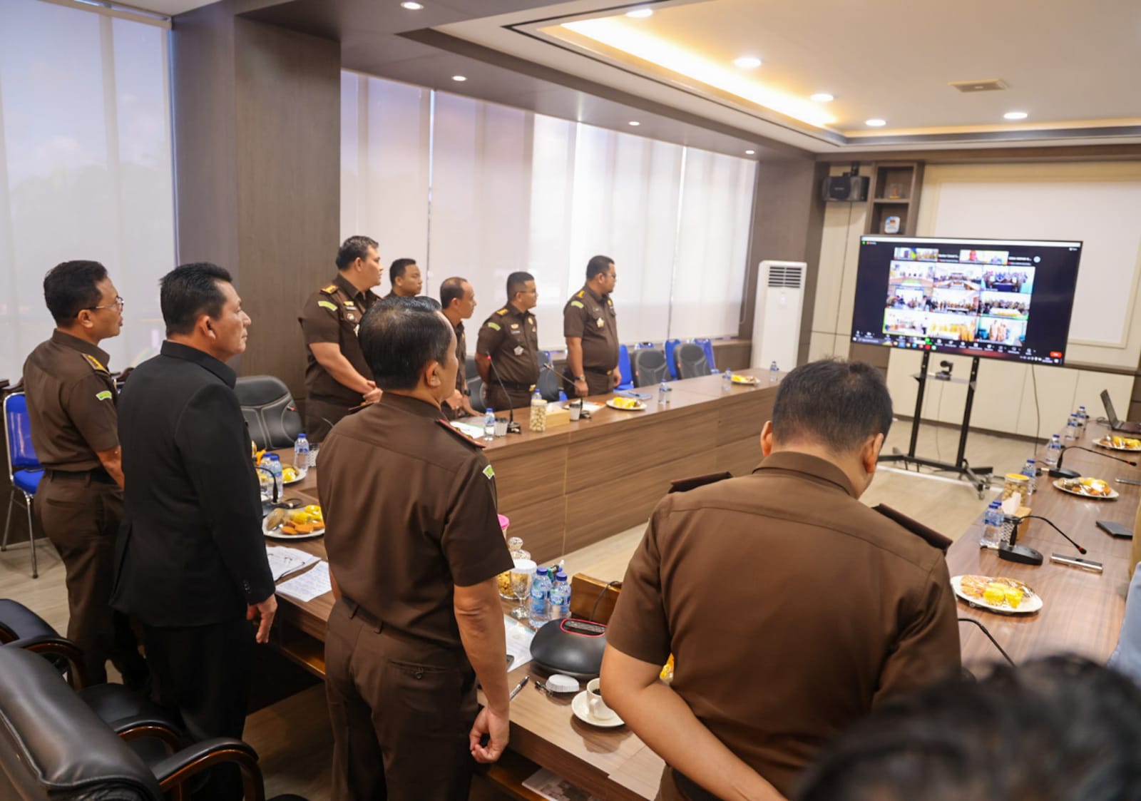 Gubernur Kepulauan Riau H. Ansar Ahmad bersama Kajati Kepri Rudi Margono menyaksikan penandatanganan yang dilaksanakan secara virtual dari Kejari, Kecabjari, dan Kantor Camat dari 5 Kabupaten se-Kepulauan Riau.