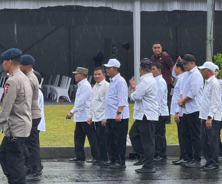 Meskipun hujan membasahi lokasi gladi bersih di kawasan Monumen Nasional (Monas), Jakarta Pusat, Rabu (19/02), para kepala daerah tampak tetap antusias mengikuti seluruh rangkaian gladi bersih tersebut. Sejak pukul 07.00 WIb pagi, Ansar dan Nyanyang telah hadir di lokasi, mengenakan pakaian hitam putih yang menambah kesan khidmat dalam persiapan pelantikan besok.