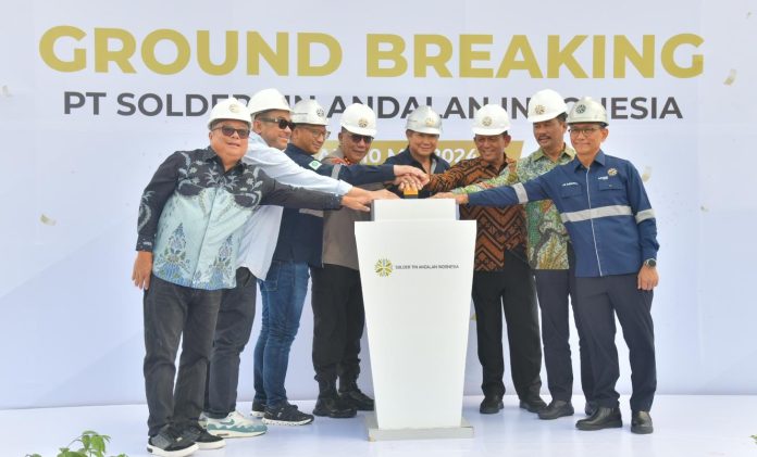 Turut hadir dalam groundbreaking, Komisaris PT Solder Tin Andalan Indonesia Aryo Djojohadi Kusumo, Owner Kawasan Industri Tunas Prima Doli, dan Direktur PT Solder Tin Andalan Indonesia An Sadiano.