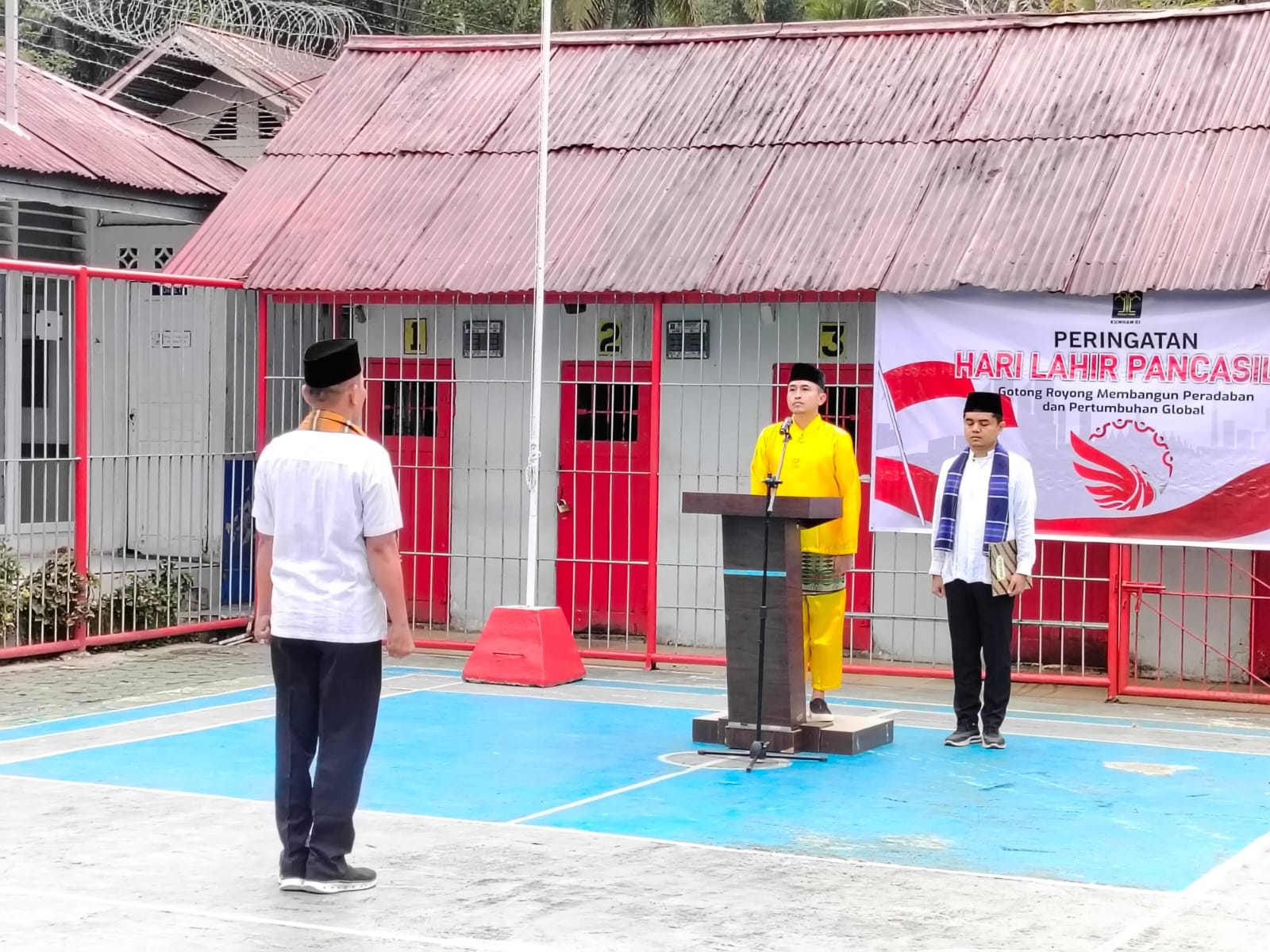 Foto : Kepala Lapas Kelas III Suliki, Kamesworo menjadi Inspektur Upacara pada Peringatan Hari Lahir Pancasila 2023.