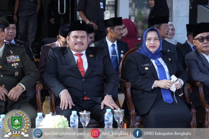 Humas DPRD – Ketua DPRD Kabupaten Bengkalis, Septian Nugraha, menghadiri pelaksanaan apel memperingati Hari Lahir Pancasila. Kegiatan berlangsung di halaman Kantor Bupati Bengkalis, Minggu (01/06/2025).