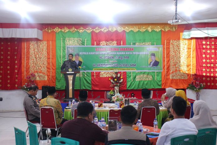 Rida dalam sambutannya menyampaikan apresiasi Pemerintah Kota (Pemko) Payakumbuh atas kerja keras dan dedikasi Joben selama masa jabatannya sebagai Kakan Kemenag.