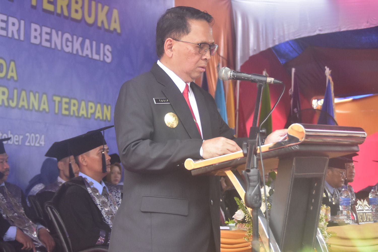 Dalam sambutannya, Pjs Bupati Bengkalis Tavip mengucapkan selamat dan tahniah kepada 788 orang mahasiswa Politeknik Negeri Bengkalis, atas keberhasilannya dalam menyelesaikan pendidikan tinggi, semoga bekal ilmu yang diperoleh mampu memperkuat kompetensi, Keahlian dan daya saing di pasar kerja maupun dunia usaha.