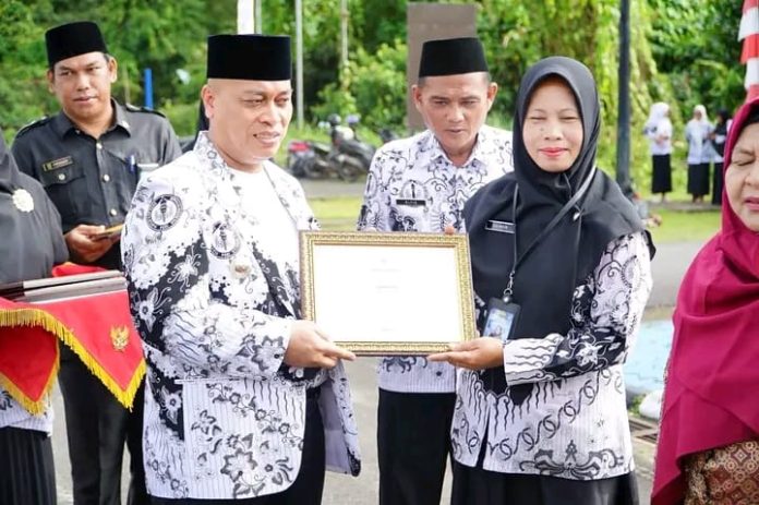 Sebagai penutup rangkaian upacara, Pemerintah Kabupaten Lingga memberikan penghargaan kepada para guru purna bhakti dan guru berprestasi tahun 2025 sebagai bentuk apresiasi atas dedikasi mereka dalam memajukan dunia pendidikan.(Bk/Iwan)
