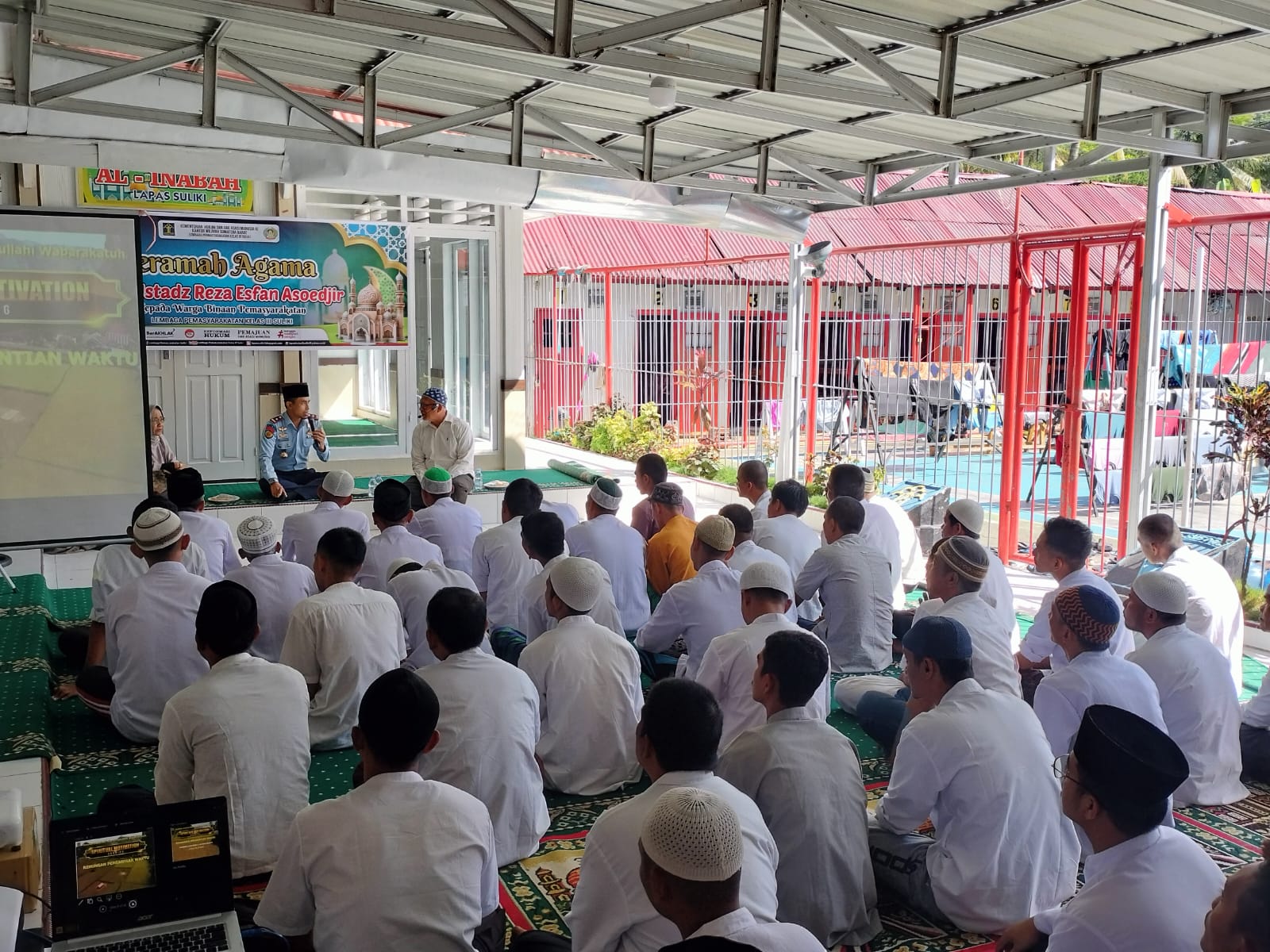 Ceramah agama yang diberikan oleh Ustadz Reza Esfan Asoedjir kepada para Warga Binaan Pemasyarakatan (WBP) berlangsung di Halaman Lapas Kelas III Suliki, Selasa (25/7/2023).