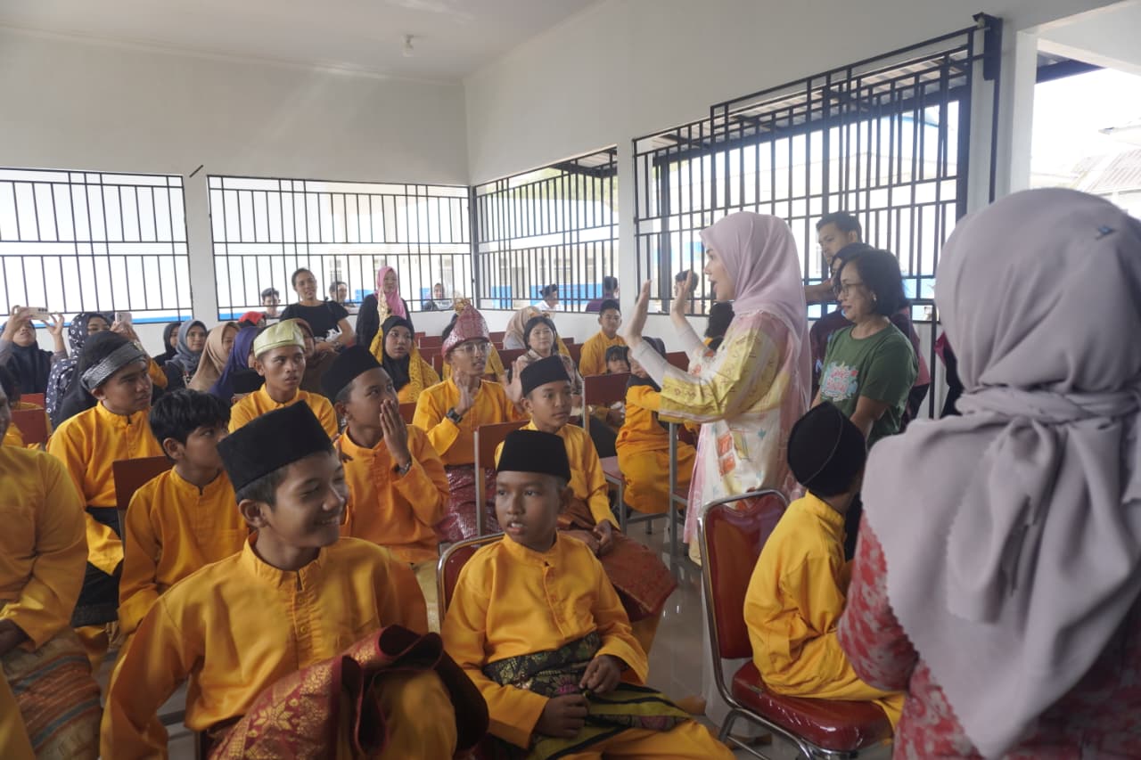 Setibanya di lokasi, Hafizha langsung menyapa para siswa dengan penuh kehangatan.