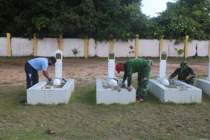 Bursakota.co.id, Natuna – Aksi bersih-bersih dan gotong royong dilakukan oleh personel Pangkalan TNI AU (Lanud) Raden Sadjad (RSA), Satrad 212 Ranai dan Denhanud 477 Paskhas Natuna digelar di Taman Makam Pahlawan (TMP) Ranai, Jalan Taruna, Kelurahan Bandarsyah, Kecamatan Bunguran Timur, Kabuputen Natuna, Selasa(27/7/2021) pagi.