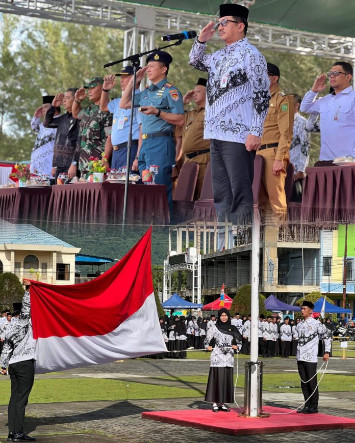 Dalam amanatnya, Sekda Boy membacakan sambutan Menteri Pendidikan Dasar dan Menengah RI, Prof. Dr. Abdul Mu’ti, M.Ed, yang mengangkat tema “Guru Hebat, Indonesia Kuat.”