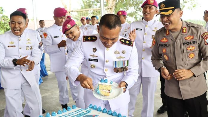 Bursakota.co.id, Kepri – Untuk meningkatkan sinergitas dan soliditas antara TNI-Polri, Kapolres Lingga AKBP Fadli Agus,S.I.K., M.H memberikan kejutan Kepada Danlanal Dabo Singkep Letkol Laut Faruq Dedy Subiantoro, M.Tr,. Opsla. dalam rangka memperingati Hari Ulang Tahun (HUT) TNI-AL Ke 77 Tahun 2022 di Mako Lanal Dabo Singkep Kabupaten Lingga, Senin (12/09/2022).