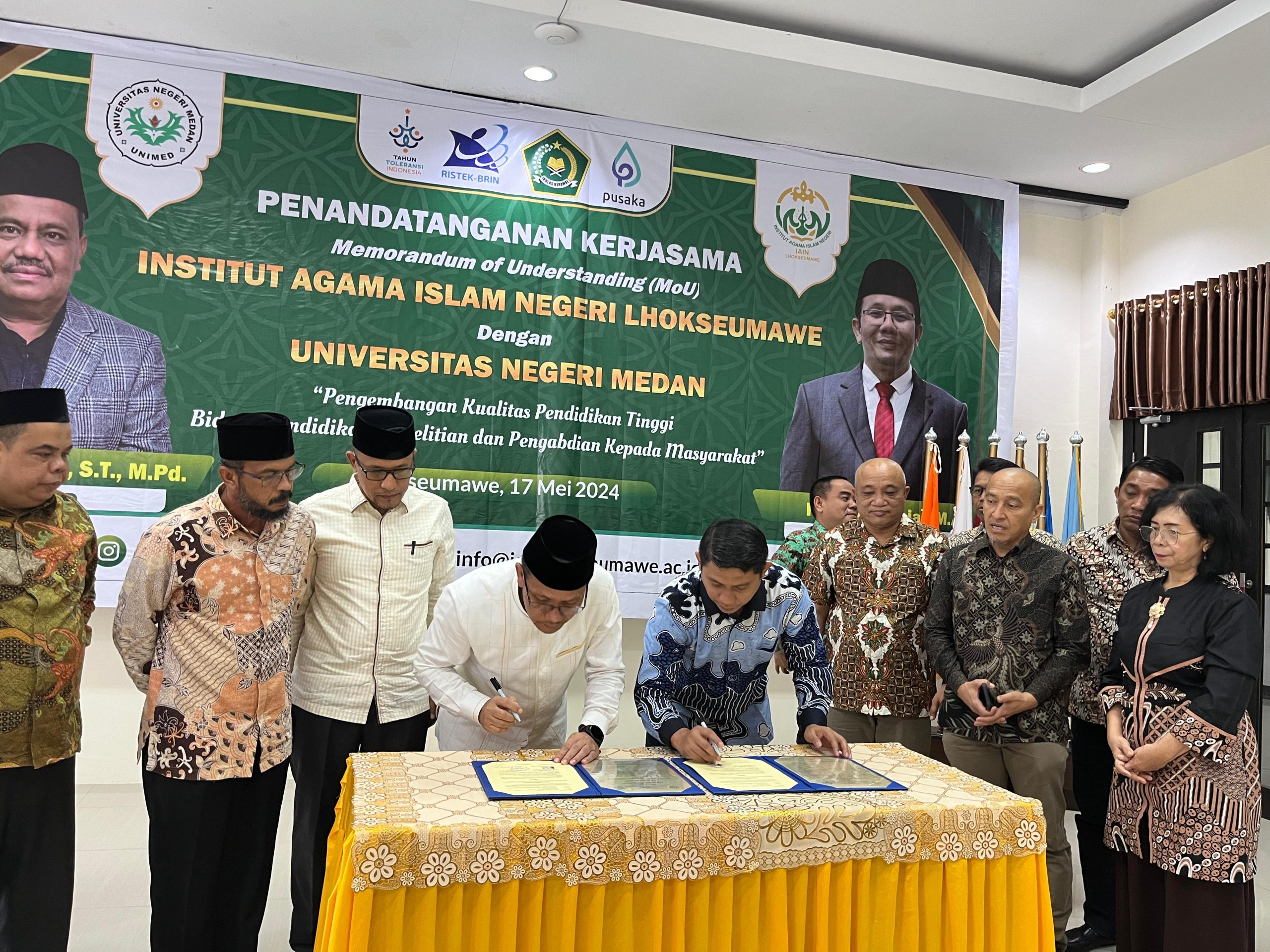 Bursakota.co.id, Lhokseumawe – Institut Agama Islam Negeri (IAIN) Lhokseumawe dan Universitas Negeri Medan (UNIMED) secara resmi menandatangani Nota Kesepahaman (MoU) yang bertujuan untuk memperkuat kerjasama di berbagai bidang akademik.