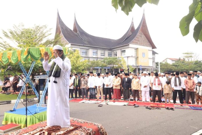 Bursakota.co.id, Payakumbuh – Ribuan jama’ah padati halaman Kantor Balai Kota Payakumbuh mengikuti Shalat Idul Adha 1444 Hijrah. Dan bertindak sebagai imam dan khatib Ustadz Yusron Lubis, Kamis (29/06/2023).