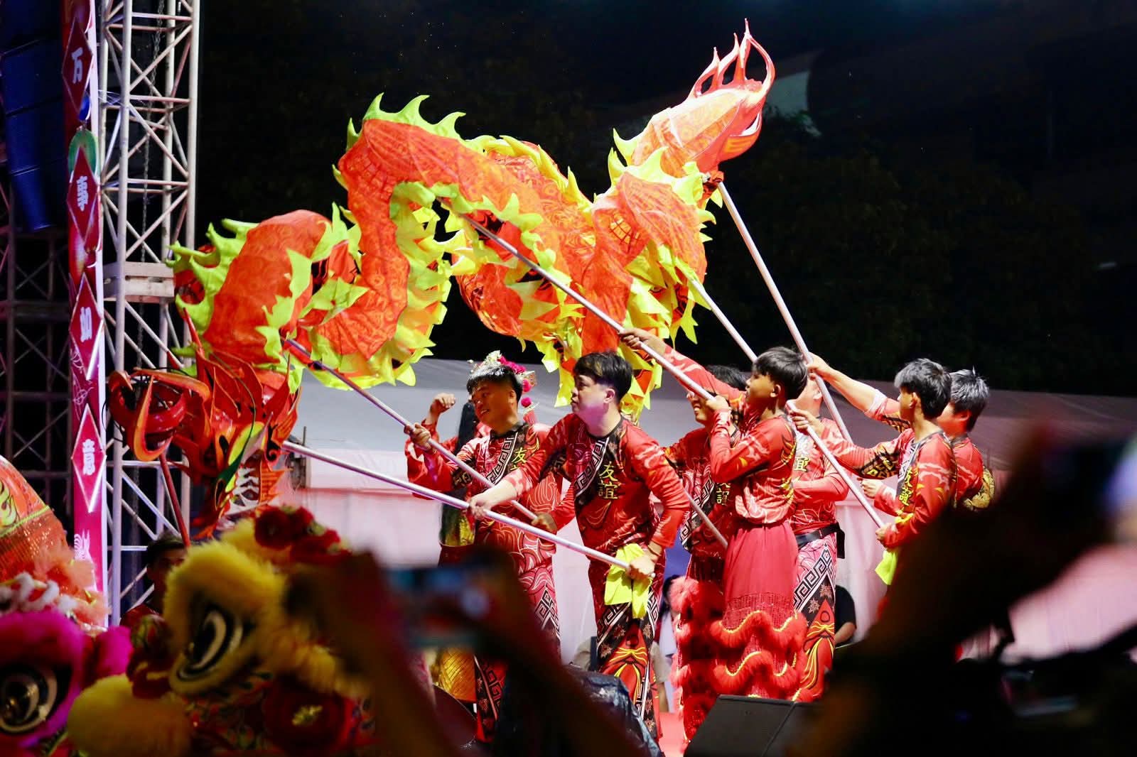 Ornamen khas Imlek menghiasi setiap sudut, sementara dentuman genderang barongsai menghidupkan semangat, disambut tepuk tangan meriah masyarakat yang larut dalam perayaan budaya.