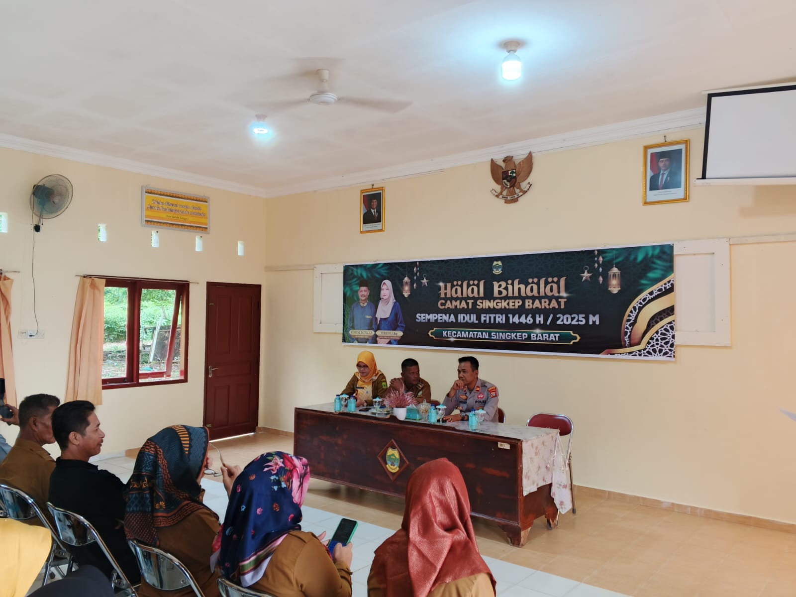 Lingga – Kapolsek Singkep Barat IPTU Henry Gunawan hadiri acara Halal Bihalal Sempena Idul Fitri 1446 H / 2025 M bersama unsur pimpinan kecamatan (Uspika) dan seluruh desa se- Kecamatan Singkep Barat, yang digelar di Gedung Balai Runding Kemala Mestika. Selasa, 15 April 2025