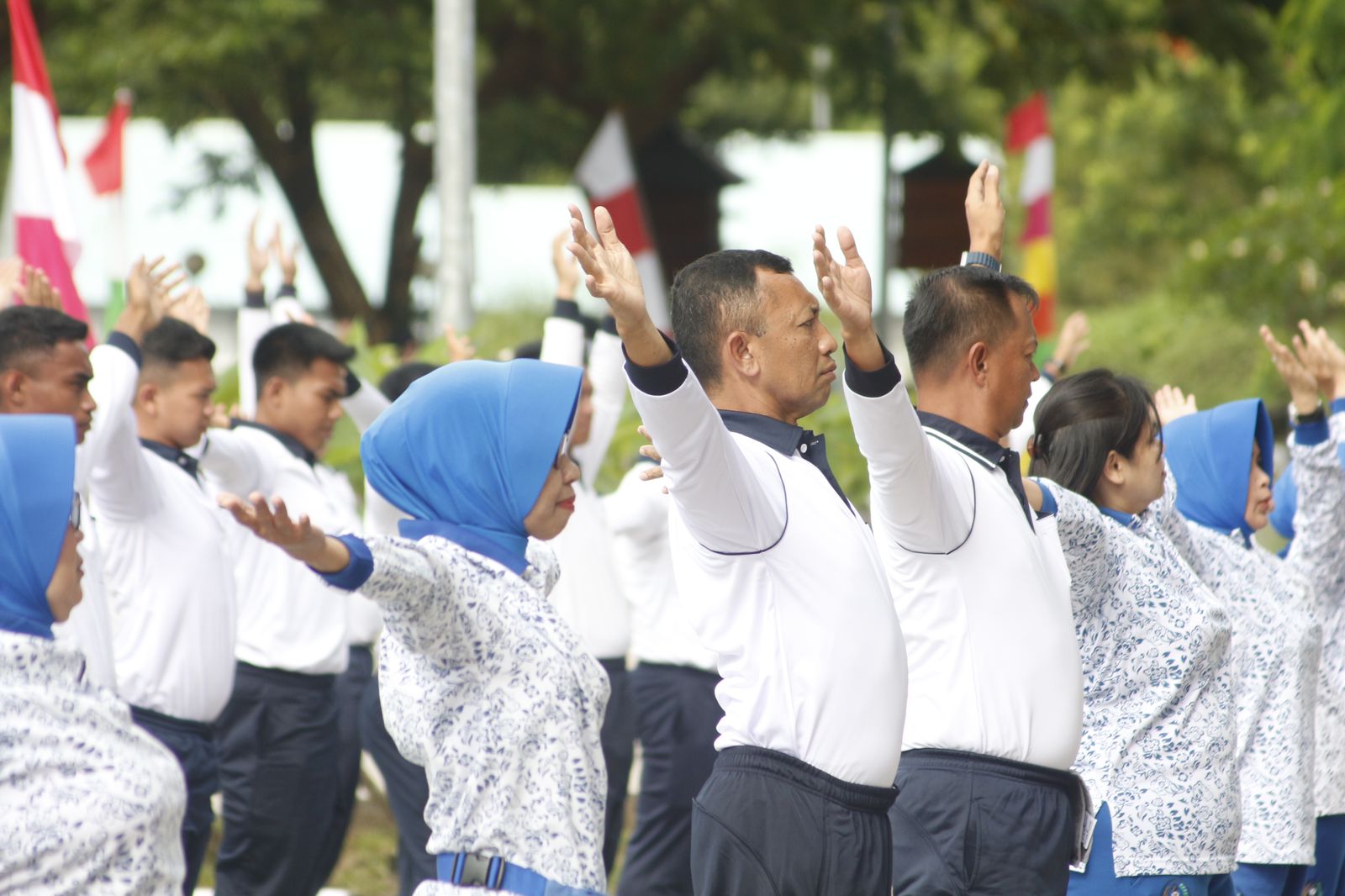 Ket Foto : Gugus Tempur Laut (Guspurla) Koarmada I bersama dengan Satuan TNI AL di Wilayah Natuna adakan olahraga bersama di Markas Komando Guspurla Koarmada I, Selat Lampa Kabupaten Natuna, Selasa (17/12/2024).