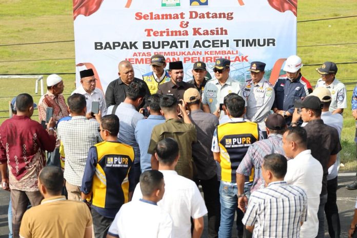Aceh Timur — Bupati Aceh Timur Iskandar Usman Al-Farlaky, S.H.I., M.Si meresmikan kembali Jembatan Peureulak, Kamis, 29 Januari 2026. Beroperasinya kembali jembatan tersebut menjadi bukti realisasi janji program kerja sekaligus menjawab keluhan masyarakat Kota Peureulak pasca dirinya dilantik sebagai kepala daerah.