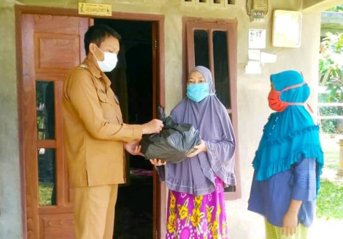 Kades Air Lengit Kuswanto, Salurkan Sembako Kepada Warga Terpapar Covid-19