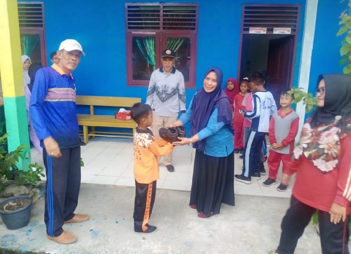 Bursakota.co.id, Lingga –Terlihat raut wajah tersenyum dan rasa gembira oleh anak-anak pelajar Sekolah Dasar (SD) yang mendapatkan bantuan sepatu geratis, yang langsung di beri oleh Kepala dinas Pendidikan, Pemuda dan Olahraga (Disdikpora) Kabupaten Lingga.