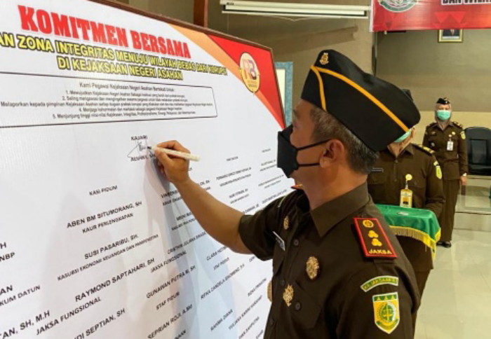 Dalam kesempatan itu Kepala Kejaksaan Negeri Asahan mengawali penandatanganan pakta integritas dan komitmen bersama untuk mewujudkan Zona Integritas Menuju Wilayah Bebas dari Korupsi (WBK) yang diikuti oleh pejabat struktural Kejaksaan Negeri Asahan. Penandatanganan pakta integritas juga diikuti oleh Jaksa dan seluruh pegawai Kejaksaan Negeri Asahan.