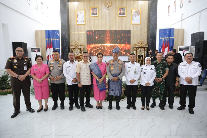 Kehadiran Kapolda disambut langsung oleh Bupati Labuhanbatu dr. Maya Hasmita, bersama Forkopimda dari Kabupaten Labuhanbatu dan Labuhanbatu Utara. Suasana kebersamaan tampak hangat dalam jamuan makan siang, yang dilanjutkan dengan penyerahan cinderamata serta pemasangan ulos sebagai bentuk penghormatan adat kepada Kapolda Sumut dan Ketua Bhayangkari Sumut.